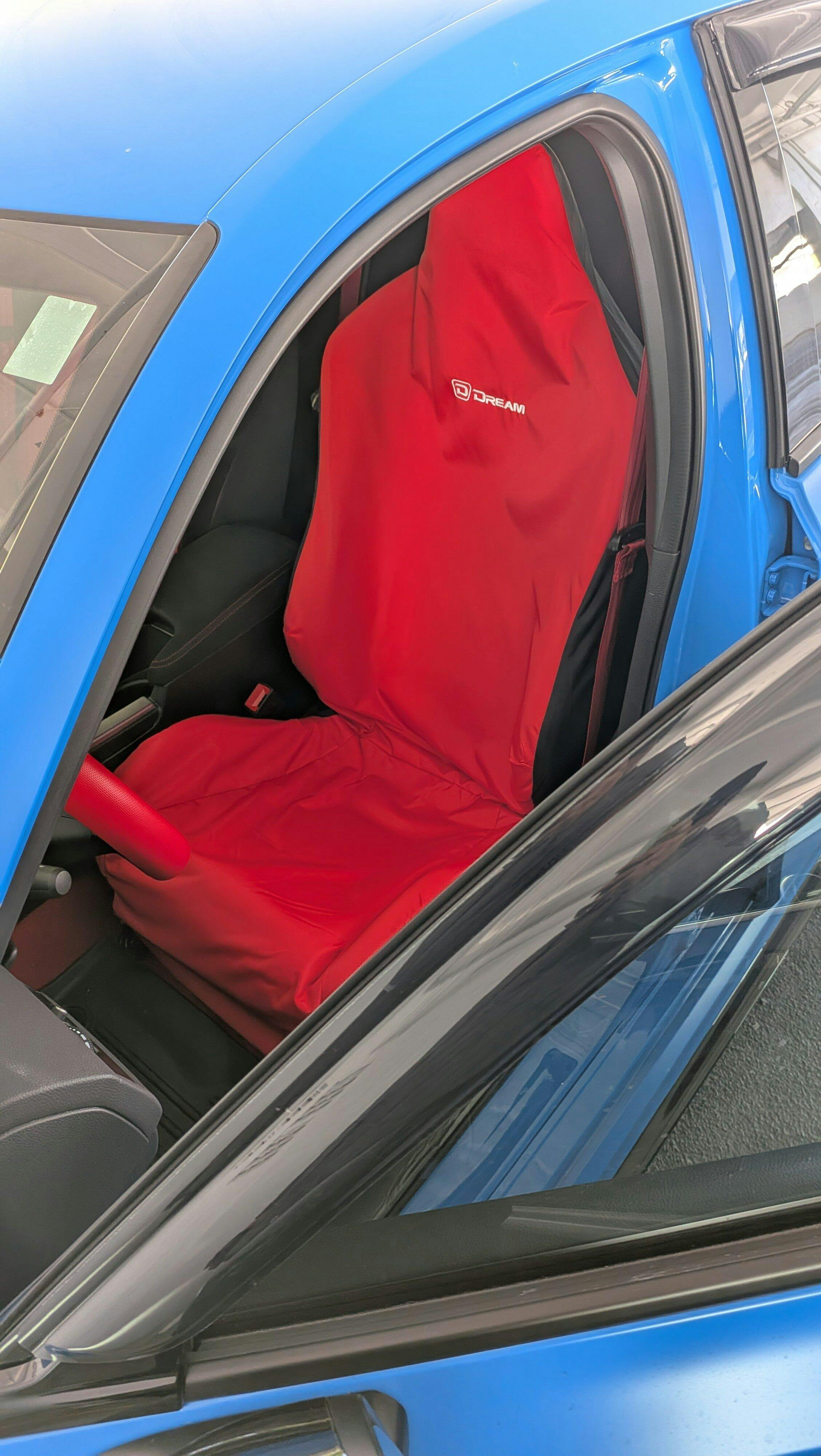 Las fundas para asientos delanteros Dream Automotive están confeccionadas con nailon resistente de 177 g y se adaptan a los asientos delanteros FL5, tanto del conductor como del pasajero. La funda lleva el logotipo de Dream bordado en el soporte del asiento.