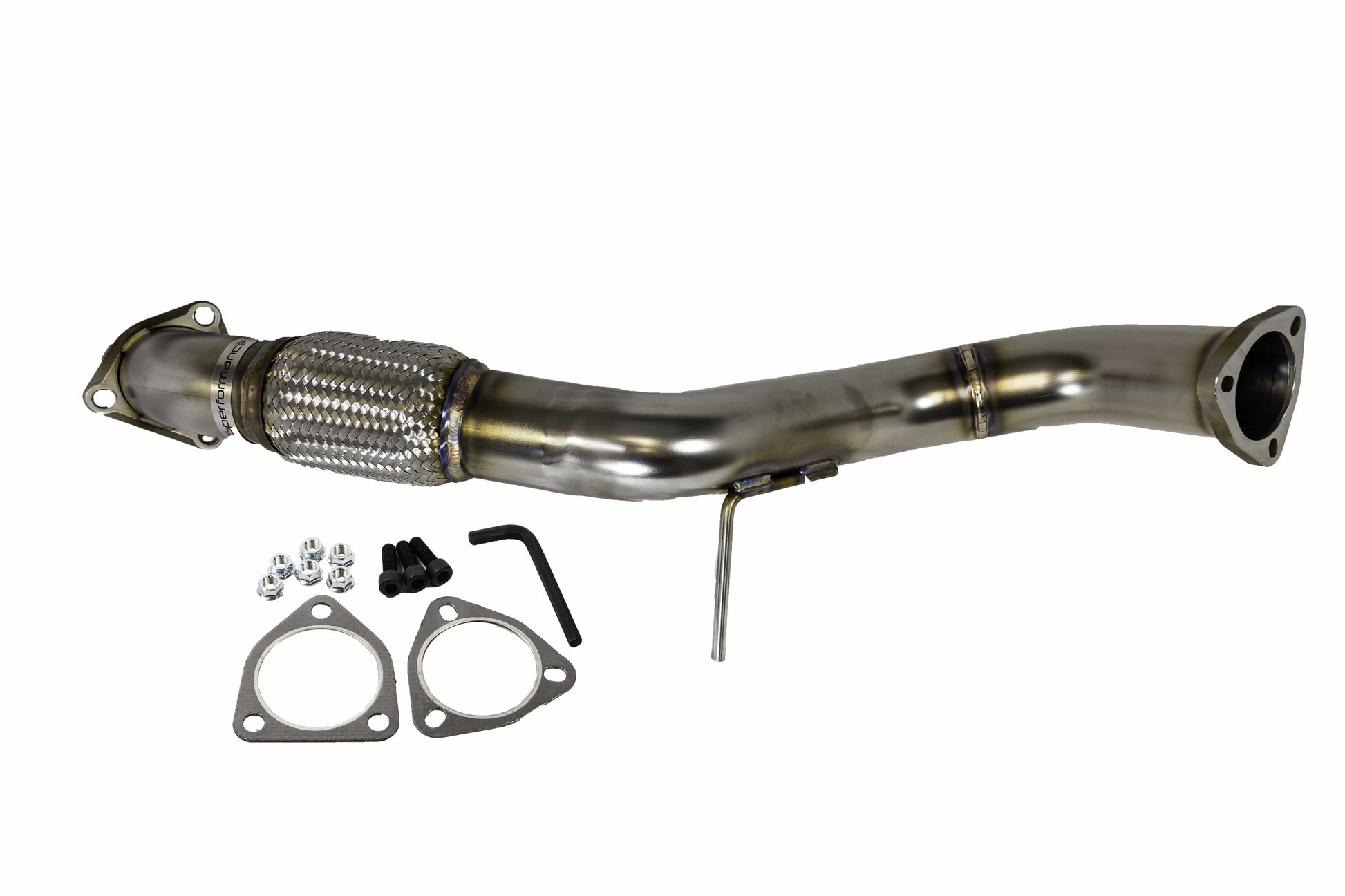 Lo que todos pedían: un tubo frontal completo de 3". Este tubo frontal reemplaza el tubo frontal altamente restrictivo de 2,37" de diámetro exterior por un tubo de flujo libre de 3,0". Este tubo frontal se atornilla directamente al sistema de escape de fábrica y a cualquier sistema de escape de posventa. Todo el conjunto está fabricado en acero inoxidable 304 de alta calidad y soldado con TIG por nuestros maestros soldadores en EE. UU.
