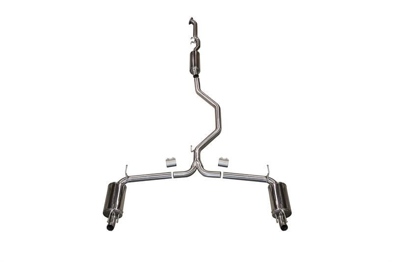 Este es un sistema de escape trasero con tubo frontal doble de 2,5”/2,25” que mantiene todos los soportes originales y es una instalación de ajuste directo.