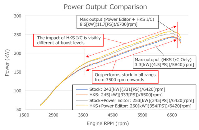 - Power: 245 kW (333 PS / 6500 rpm (OEM 243 kW (331 PS / 6420 rpm)