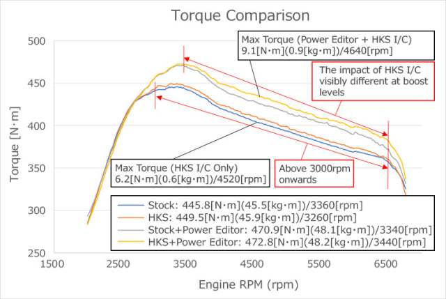 - Torque: 449.5 Nm (45.9 kg/m) / 3260 rpm (OEM 445.8 Nm (45.5 kg/m) / 3360 rpm)