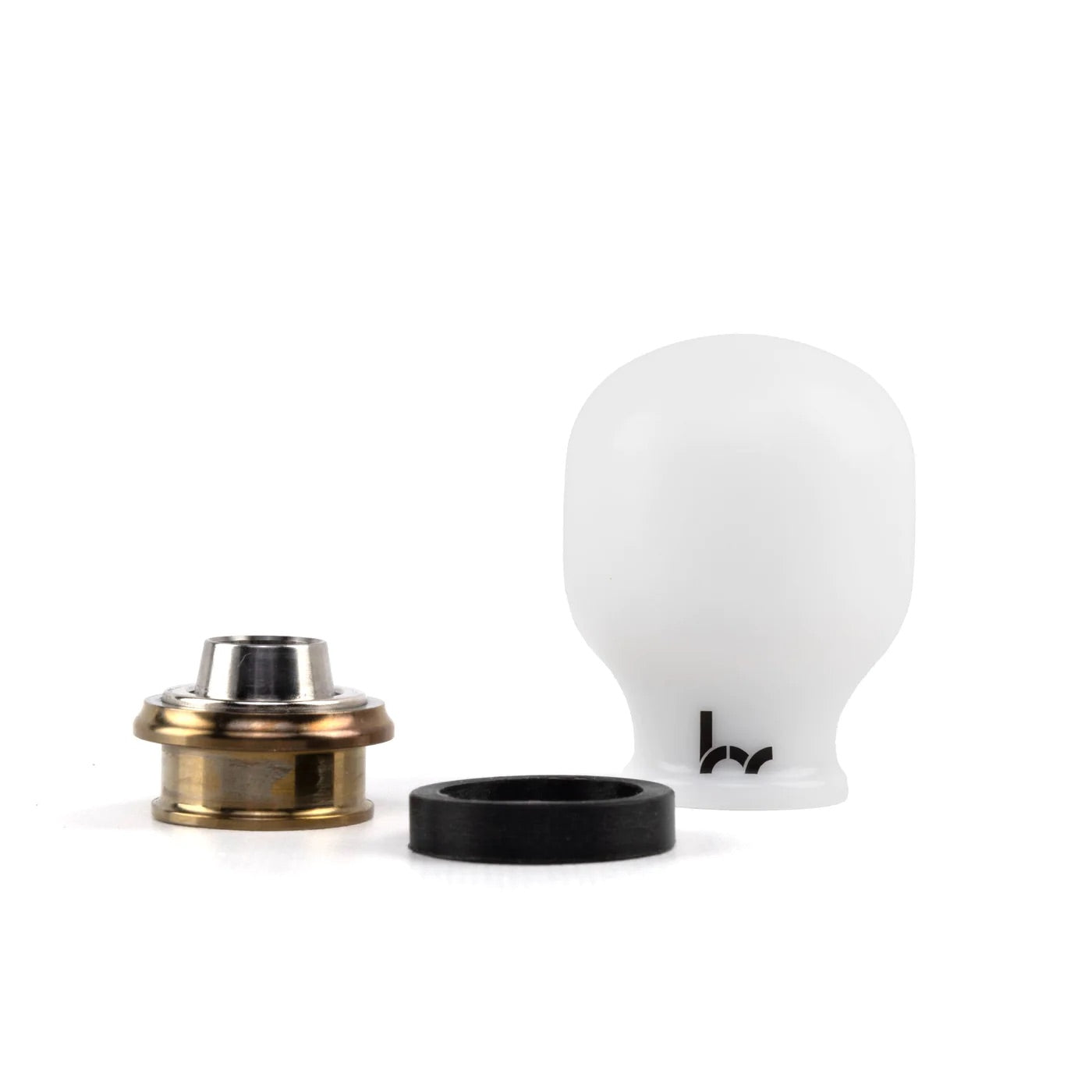 Esta perilla está fabricada en Delrin, un material ligero pero resistente que se siente muy bien en la mano y soporta cambios extremos de temperatura. Cada perilla incluye un collar a su elección, así que no es necesario comprar dos piezas por separado.