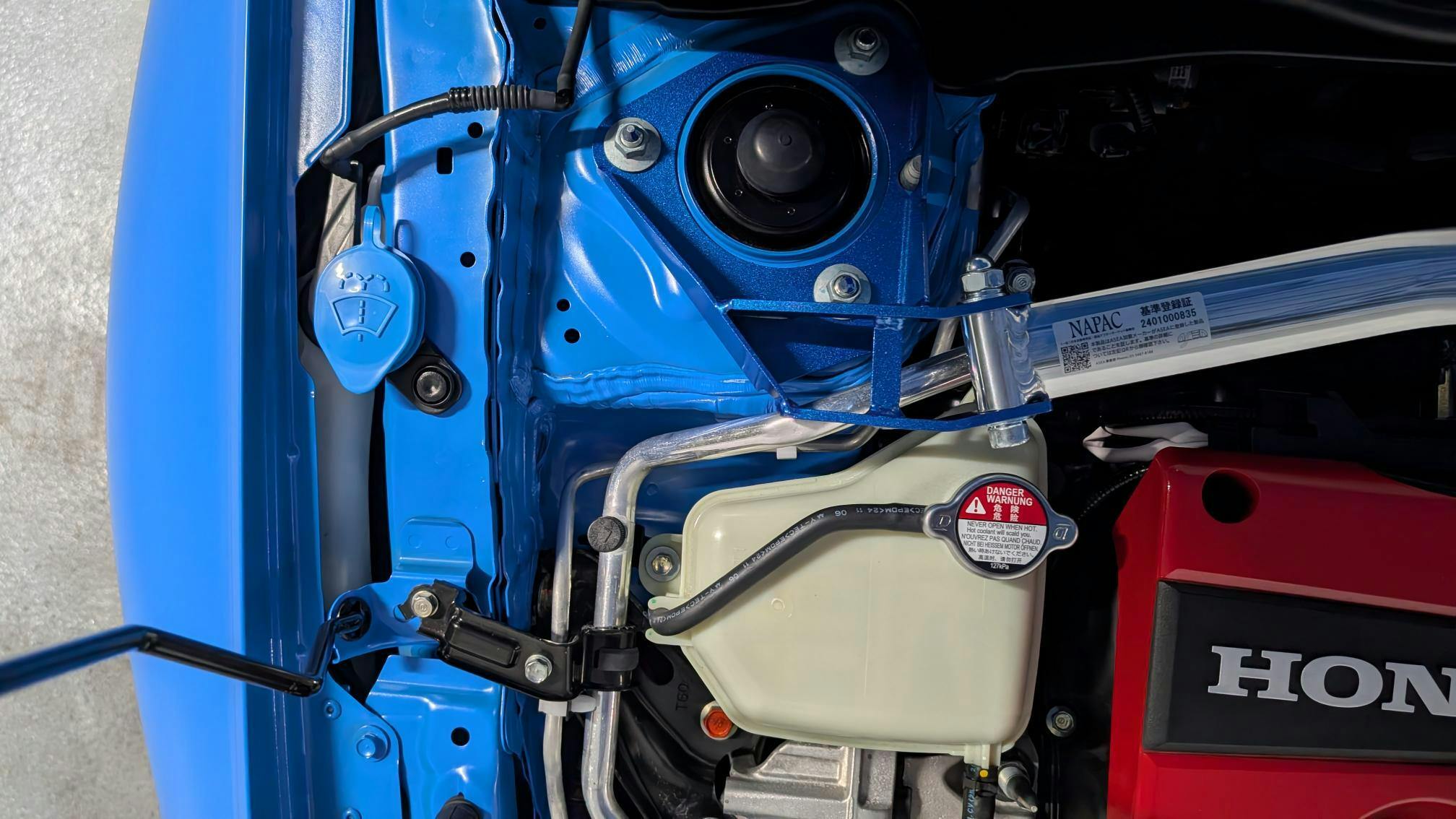 Maximize chassis rigidity and sharpen handling with the Cusco OS-Type Front Strut Tower Brace, engineered specifically for the 2023+ Honda Civic Type-R. Featuring a durable aluminum oval shaft paired with robust steel end plates, this brace significantly reduces flex in the strut towers for more precise steering response and improved cornering stability. Finished in Cusco’s signature blue with a polished center bar, it not only boosts performance but also adds a premium motorsport look to your engine bay. Ideal for both spirited street driving and track use, the Cusco OS-Type is the ultimate blend of function and style.
